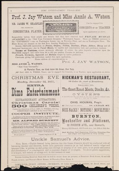 Watson's Novel & Original Dime Entertainments. Ninth Grand Sacred Concert