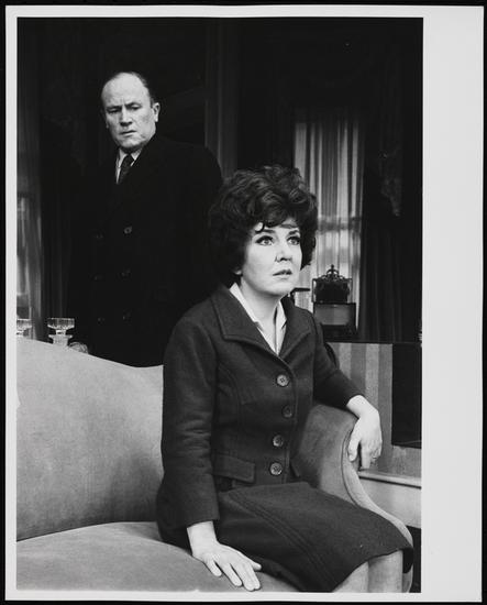 [Maureen Stapleton as Karen Nash and Nicol Williamson as Sam Nash in the "Visitor From Mamaroneck" story in "Plaza Suite".]