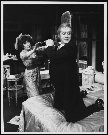 [Maureen Stapleton as Karen Nash and Nicol Williamson as Sam Nash in the "Visitor From Mamaroneck" story in "Plaza Suite".]