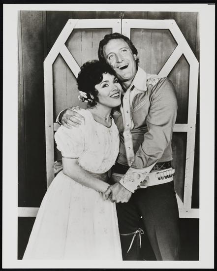 [Ralph Lowe as Curly and Florence Henderson as Laurey in the touring production of "Oklahoma!".]