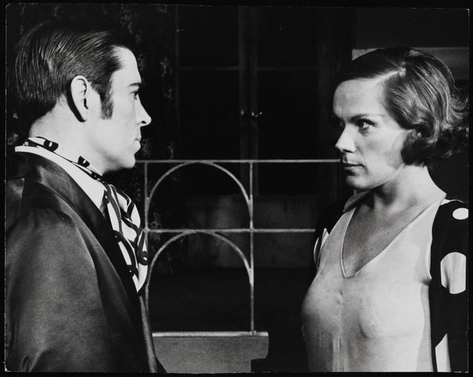 [Tammy Grimes as Amanda Prynne and Brian Bedford as Elyot Chase in "Private Lives".]