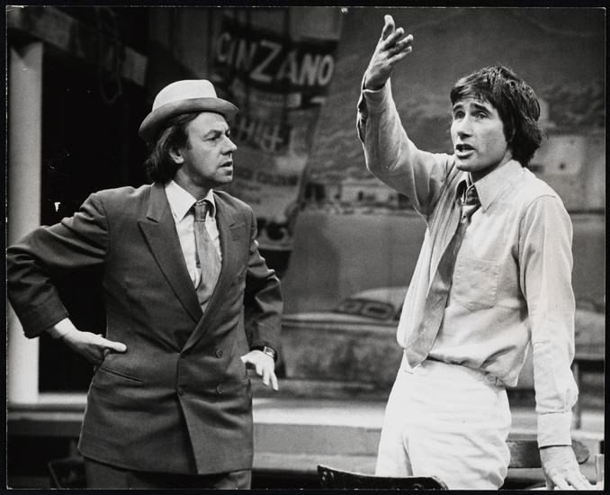 [Jim Dale as Scapino, Raymond Platt as Carlo and Ian Trigger as Argante in "Scapino".]