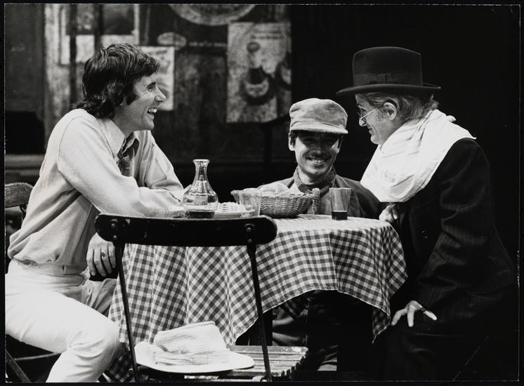 [Ian Trigger as Argante and Jim Dale as the title role in "Scapino".]