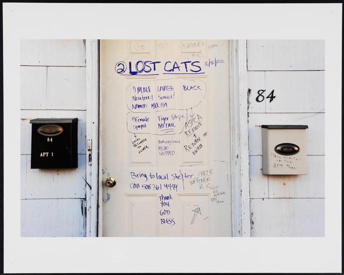 Notice of lost cats, updated when they were found, New Dorp Avenue, Staten Island