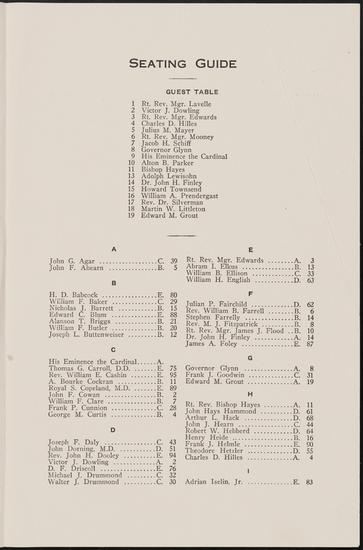 Seating List According to Tables. 23rd Annual Banquet of the New York State Association of Real Estate Boards