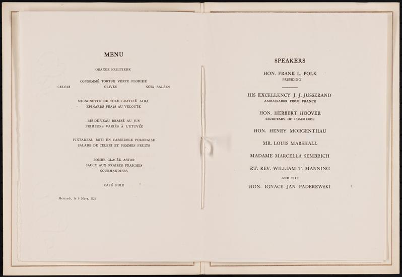 Testimonial Dinner to the Hon. Ignace Jan Paderewski given by the Civic Forum, New York