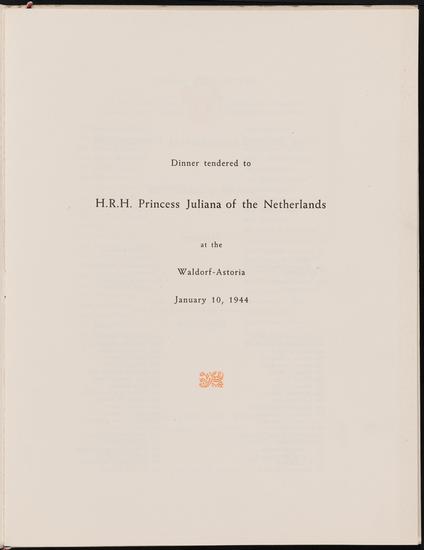 Dinner tendered to H.R.H. Princess Juliana of the Netherlands