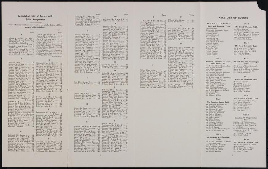 Table Assignments, Annual Bar Dinner of the New York County Lawyers' Association
