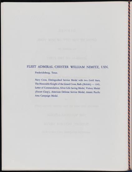 Dinner given by the City of New York in honor of Admiral of the Fleet Chester W. Nimitz