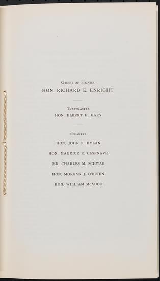 Banquet tendered by the Citizens Committee to the Hon. Richard E. Enright on his twenty-fifth Anniversary of Service to the City of New York