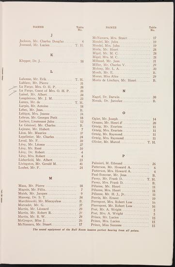 Dinner to M. le Président Edouard Herriot, Député et Maire de Lyon. Guest's Seating List