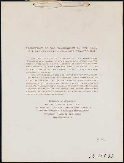 [Menu for the 142nd Annual Banquet of the Chamber of Commerce of the State of New York.]
