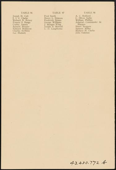 Seating List. Dinner in Honor of the British and French War Commissions Given by the Mayor of the City of New York