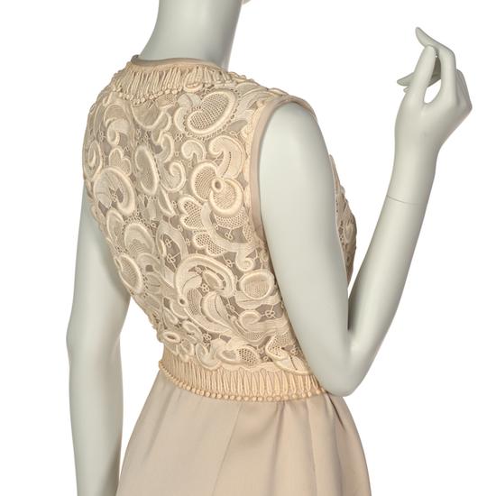 Evening dress in beige silk twill and heavy guipure beige cotton lace