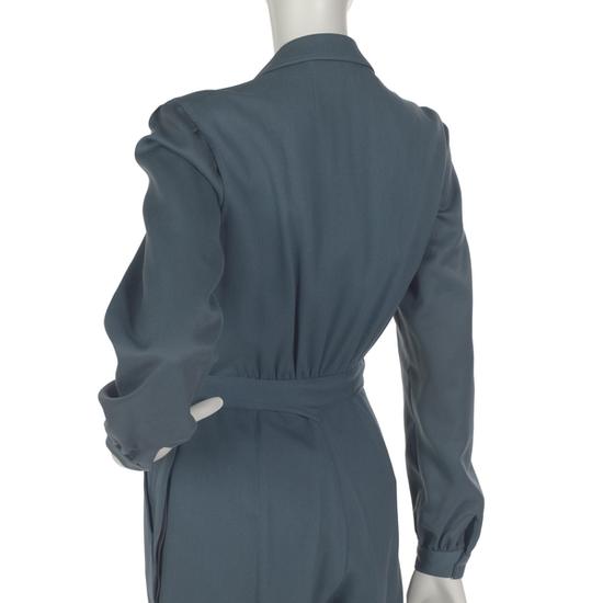 "Rosie the Riveter," muted blue wool jumpsuit