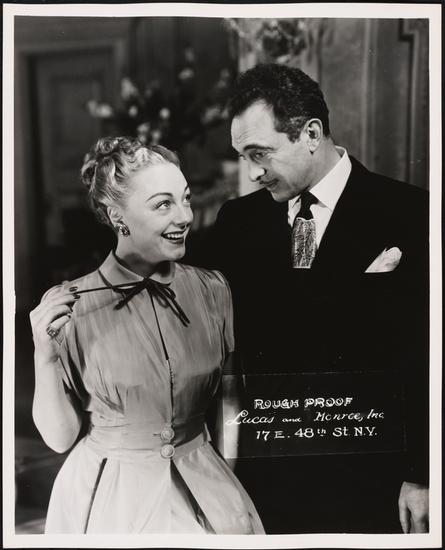[Sam Levene as Sidney Black and Virginia Field as Irene Livingston in "Light Up the Sky".]