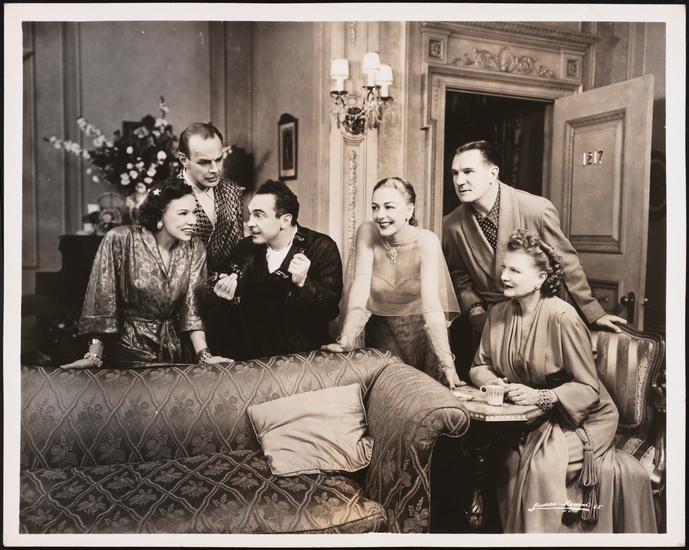 [Sam Levene as Sidney Black and Virginia Field as Irene Livingston in "Light Up the Sky".]