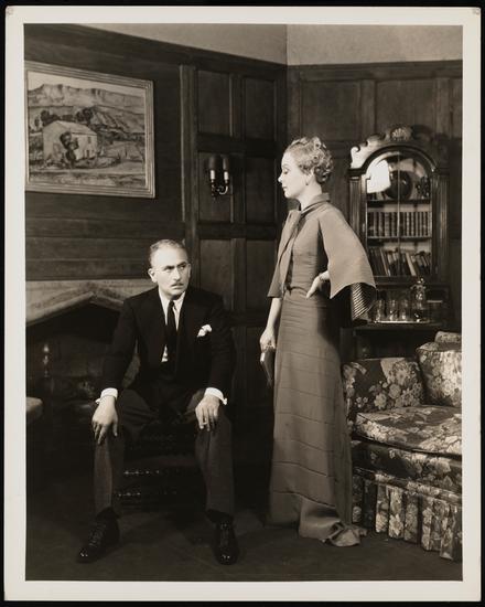 [John Halliday as Hugo Willens and Jane Cowl as Lady Violet Wyngate in "Rain from Heaven".]