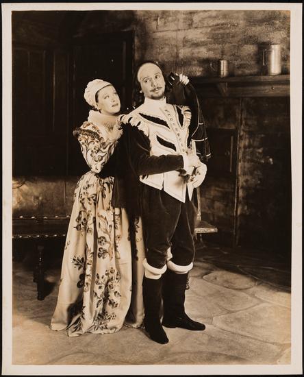 [Barry Thomson as Will Shakespeare and Ruth Chatterton as Anne Hathaway Shakespeare in "Second Best Bed".]