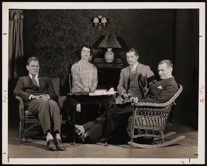 [Glenn Anders as Edmund Darrell, Tom Powers as Charles Marsden and Judith Anderson as Nina Leeds in "Strange Interlude".]