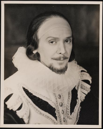 [Barry Thomson as Will Shakespeare and Ruth Chatterton as Anne Hathaway Shakespeare in "Second Best Bed".]