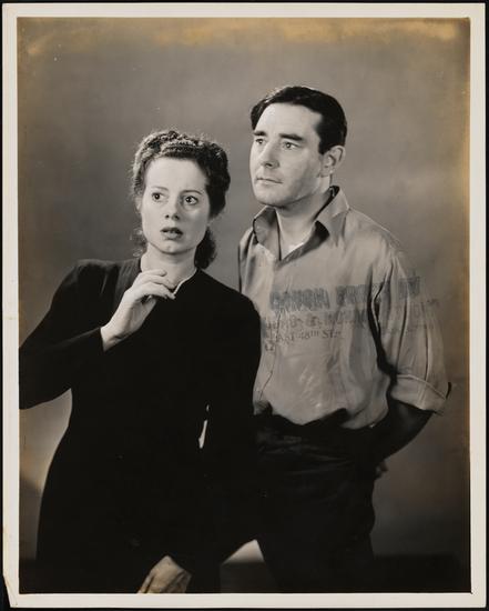 [Elsa Lanchester as Emmy Baudine and John Moore as Robert Stanforth in "They Walk Alone".]