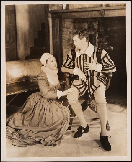 [Barry Thomson as Will Shakespeare and Ruth Chatterton as Anne Hathaway Shakespeare in "Second Best Bed".]