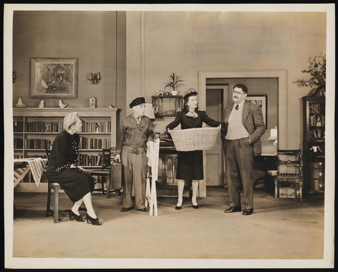 [Doro Merande as Adelaide, Robert Burton as Sam Whitaker and Ethel Owen as Irma Dairymaple in "Three's a Family".]