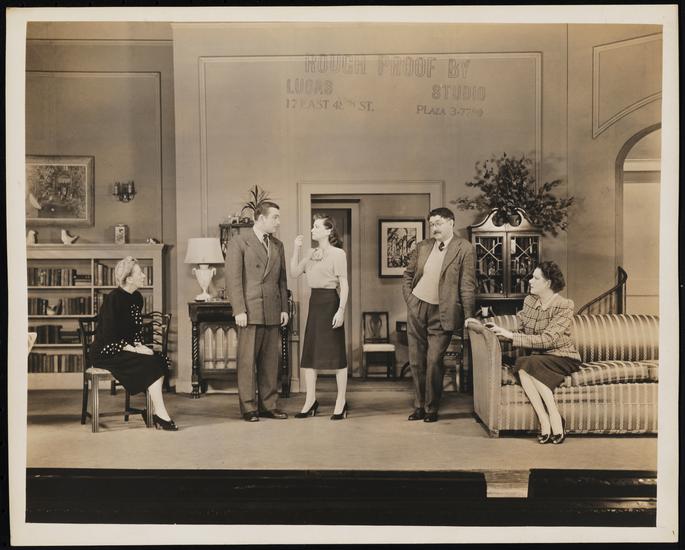 [Ruth Weston as Frances Whitaker and Katharine Bard as Kitty Mitchell in "Three's a Family".]