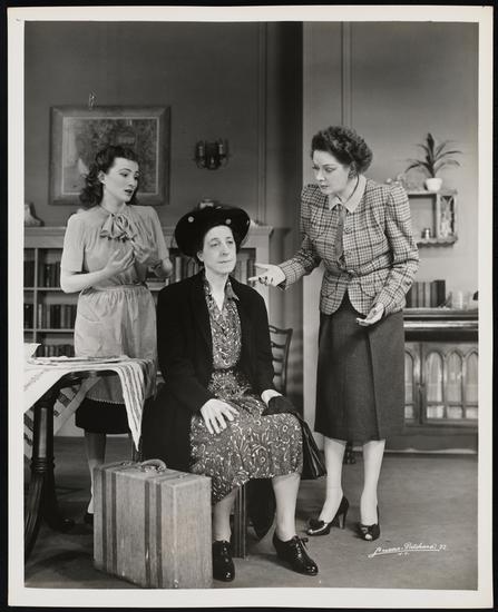 [Ruth Weston as Frances Whitaker and Katharine Bard as Kitty Mitchell in "Three's a Family".]