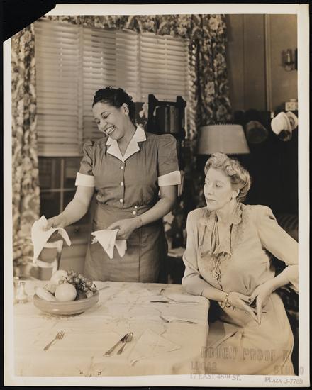 [Robert Burton as Sam Whitaker and Gee Gee James as Another Maid in "Three's a Family".]