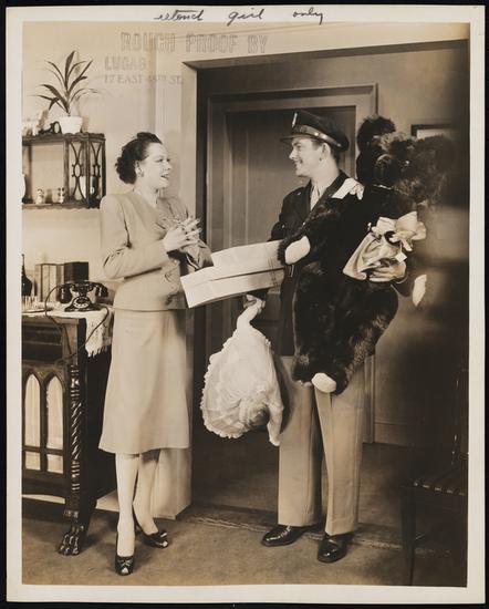 [Francis De Sales as Eugene Mitchell and Katharine Bard as Kitty Mitchell in "Three's a Family".]