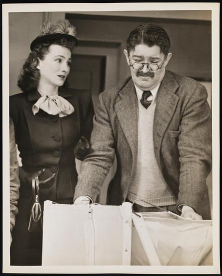 [Francis De Sales as Eugene Mitchell and Katharine Bard as Kitty Mitchell in "Three's a Family".]