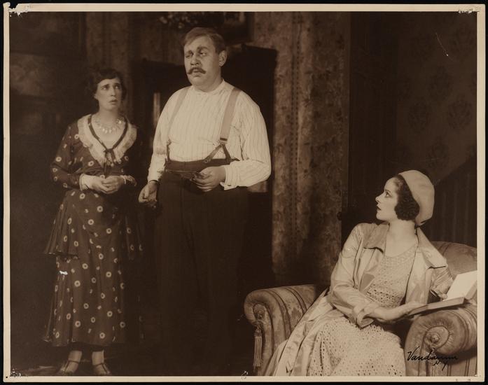 [Louise Hampton as Annie Marble, Jeanne de Casalis as Madame Collins and Charles Laughton as William Marble in Act 3 of "Payment Deferred".]