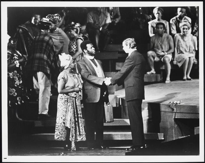 [Margaret Cowie as Irina and Gilbert Price as Absalom Kumalo in "Lost in the Stars".]