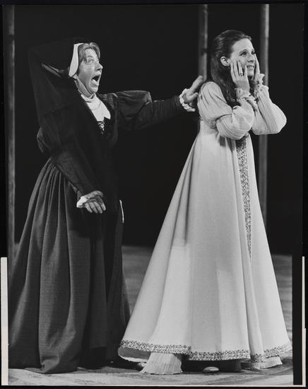 [Charlotte Rae as the Nurse and Susan McArthur as Juliet in "Romeo and Juliet".]