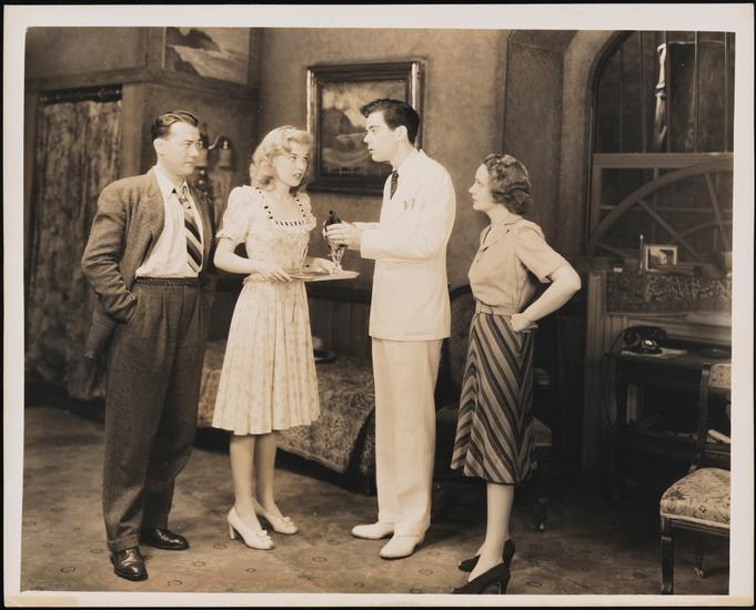 [Elliott Reid in an unidentified role and Peggy Knudsen as Eileen Sherwood in "My Sister Eileen".]