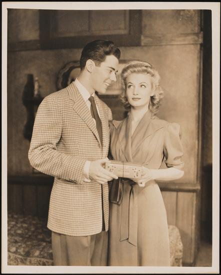 [Elliott Reid in an unidentified role and Peggy Knudsen as Eileen Sherwood in "My Sister Eileen".]