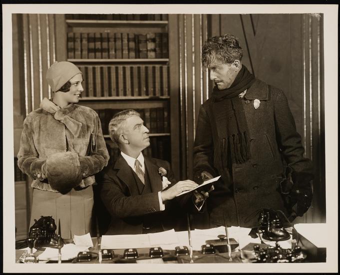 [John Williams as Anton Schuh, Audray Dale as Lydia and Arthur Byron as Nordson in "One, Two, Three".]