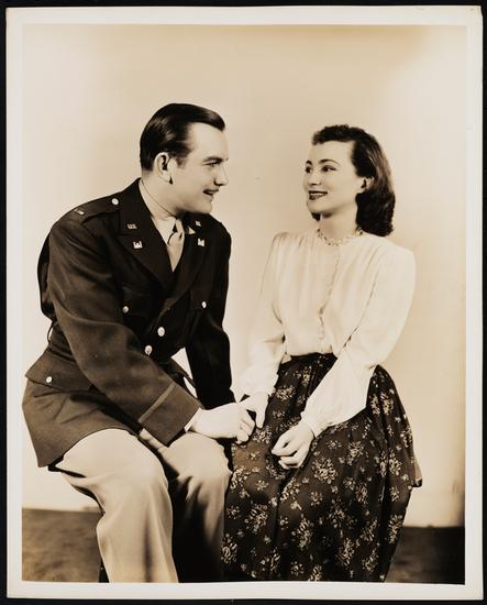 [Katharine Bard as Kitty Mitchell and Francis De Sales as Eugene Mitchell in "Three's a Family".]