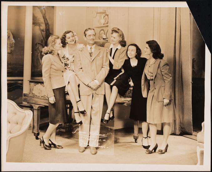 [Philip Merivale as Wallace Maxwell, Yolanda Ugarte as Dolores Maxwell and Joan Beard as a Girl Reporter in "Public Relations".]