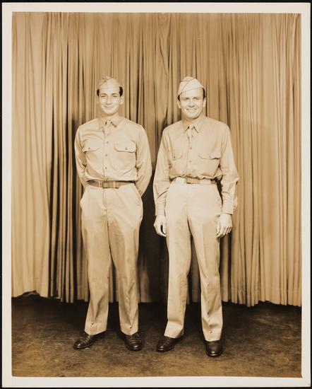 [Sgt. John Mendes and Pvt. Ross Elliot in the "Military Vaudeville Show" number in "This Is the Army".]