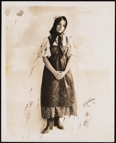 [The soprano Lina Ostrovskaya in Ukrainian dress for "The Russian Isba".]