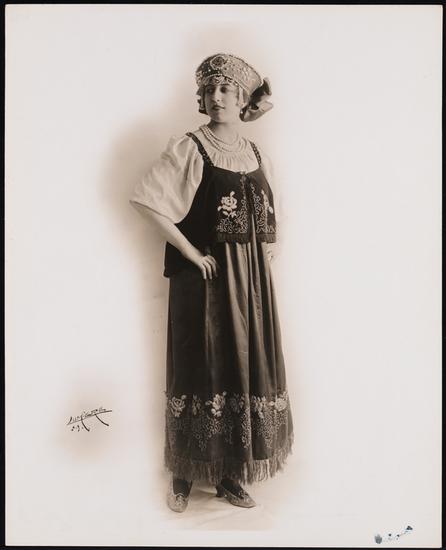 [The soprano Lina Ostrovskaya in Ukrainian dress for "The Russian Isba".]