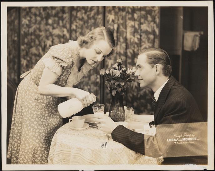 [Betty Field as Mary Ward and Earl McDonald as Clifton Ross in "Two On An Island".]