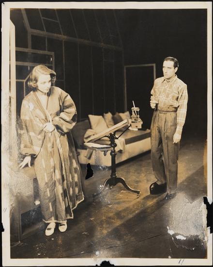 [Luther Adler as Lawrence Ormont and Betty Field as Mary Ward in "Two On An Island".]