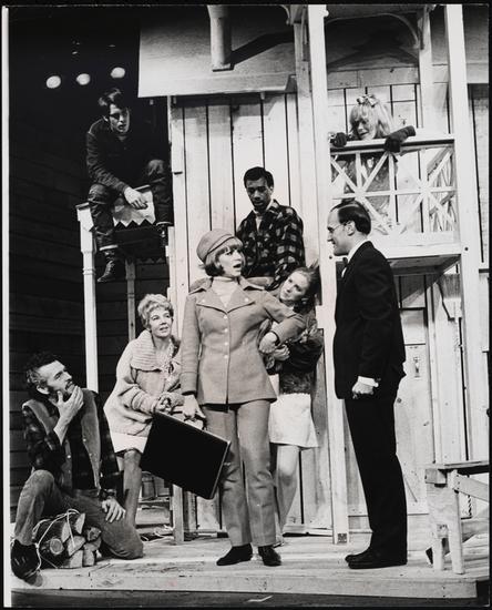 [Patti Karr as Miss Unit and Dan Resin as Herman Higgens in "Month of Sundays".]