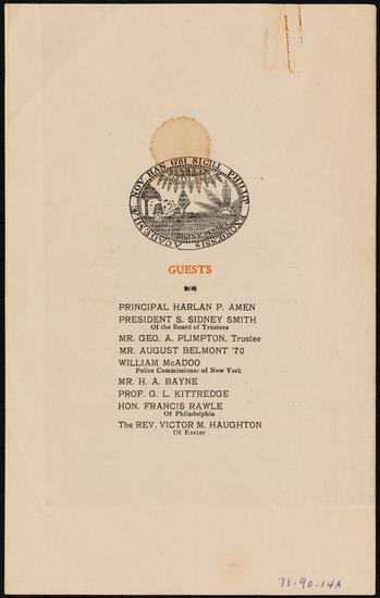 Songs. Twenty-third Annual Dinner of the New York Association of the Alumni of the Phillips Exeter Academy