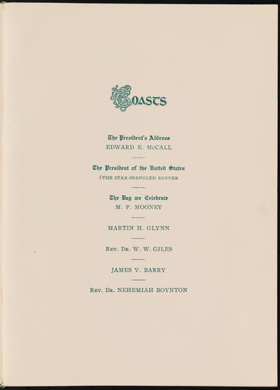 Friendly Sons of St. Patrick in the City of New York [118th anniversary dinner.]