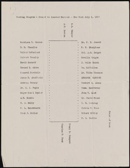 John Fritz Medal Board of Award Dinner to Senatore Guglielmo Marconi